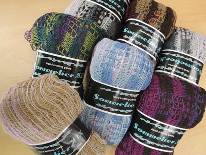 幅広のレースのような、テープヤーン。